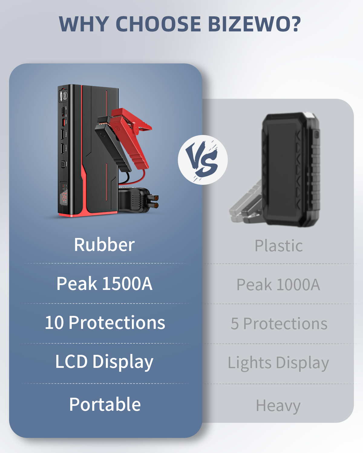 - 【LCD Display & Ultra Bright LED Light】Jumper cable with LCD screen to show remaining power and LED light with 500-lumen bulbs and three modes. Ideal for emergencies, outdoor adventures, and accidents to increase safety.