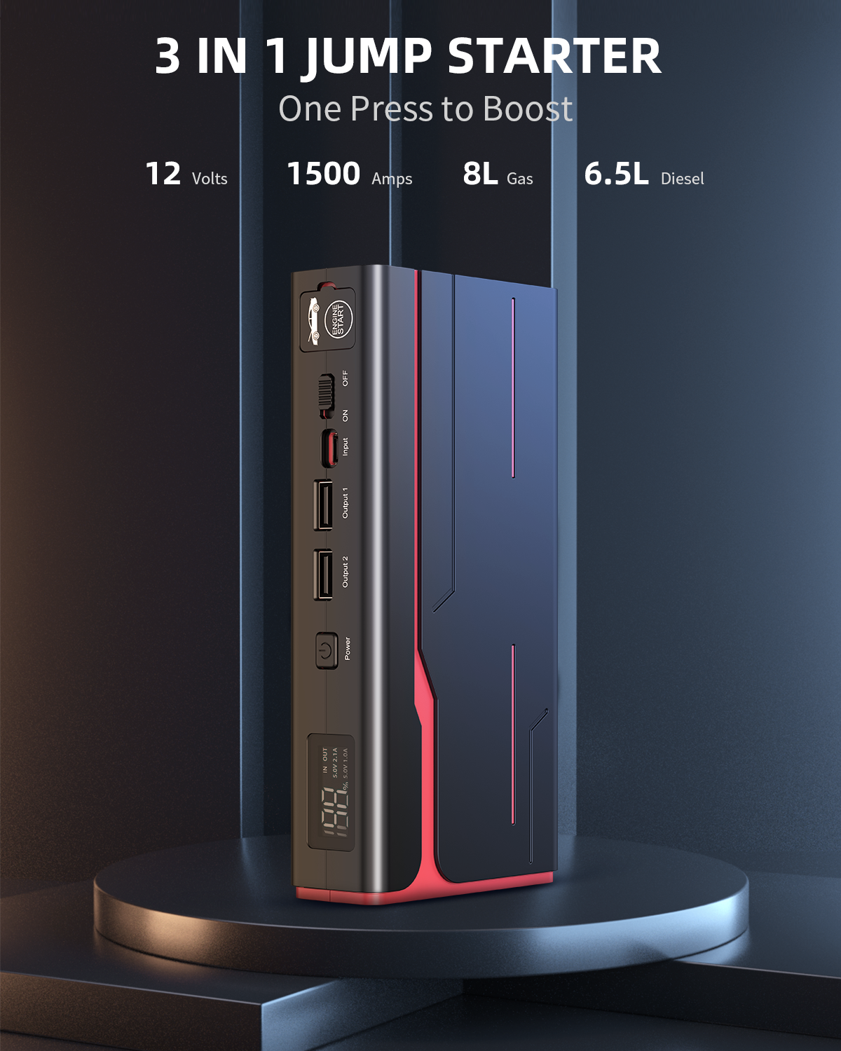 Jump Starter-3 in 1 Car Battery Jump Starter-2500A 12V 21000mAh Portable Charger, Jump Box, Battery Booster Pack with LCD Display (for 8L Gas/6.5L Diesel)(FBA warehouse shipment, banned by Amazon)