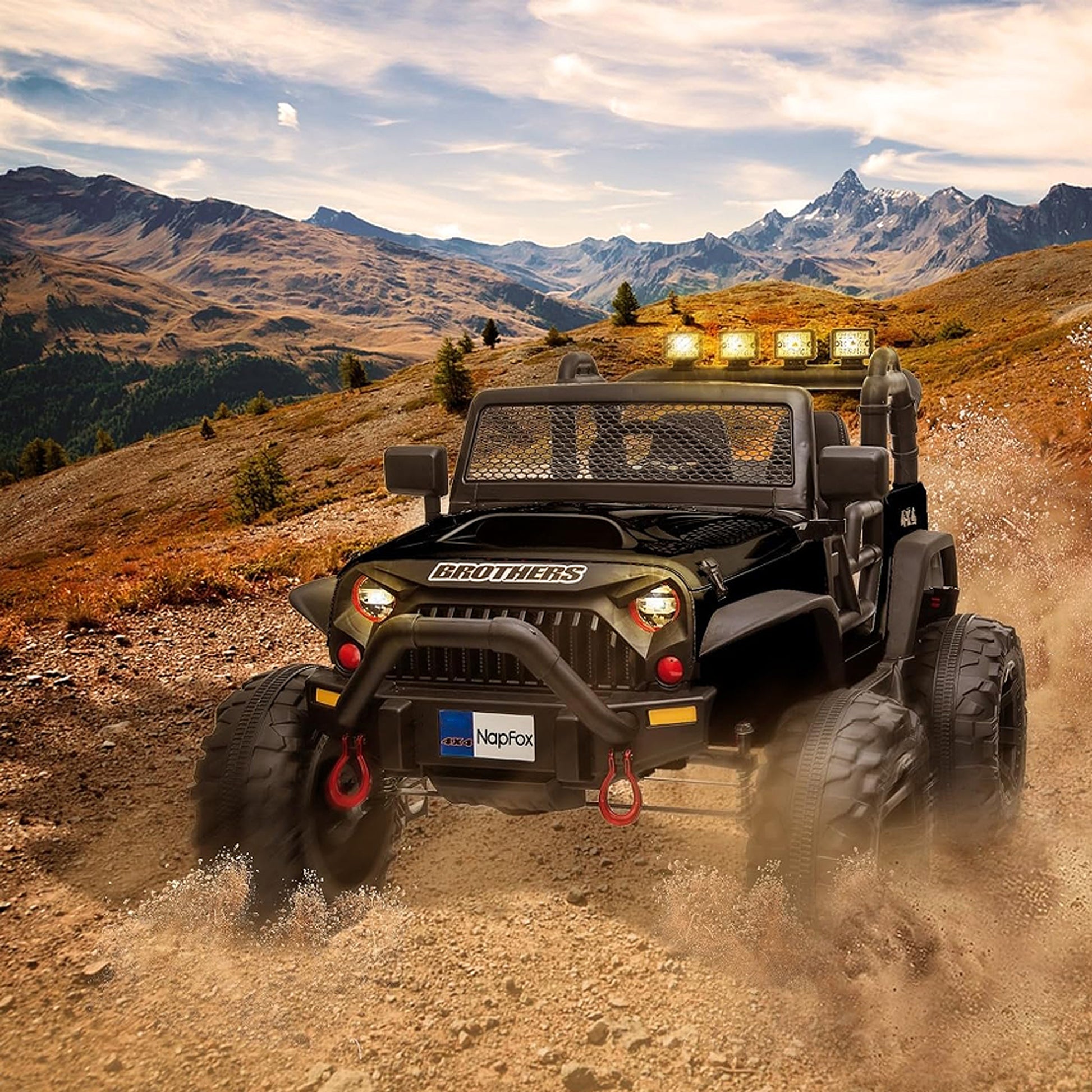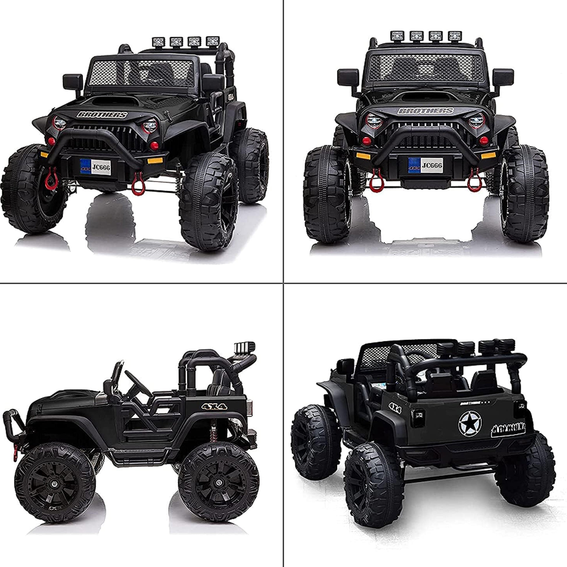 Large Wheels 2 Seater Kids Electric Car Powerful Electric Ride On Truck w/Remote Control, 2 Speeds, Music, Spring Suspension for Boys and Girls,Black
