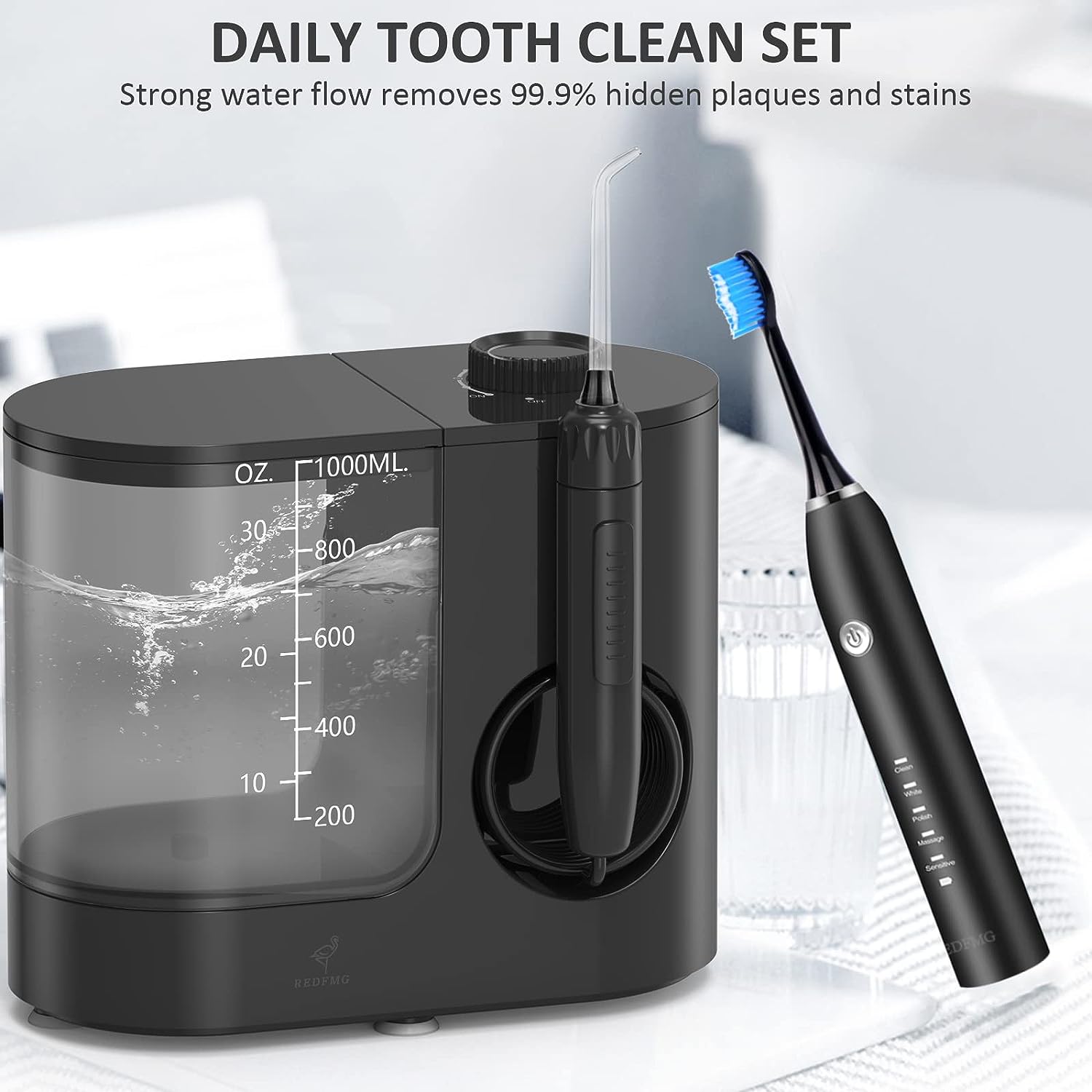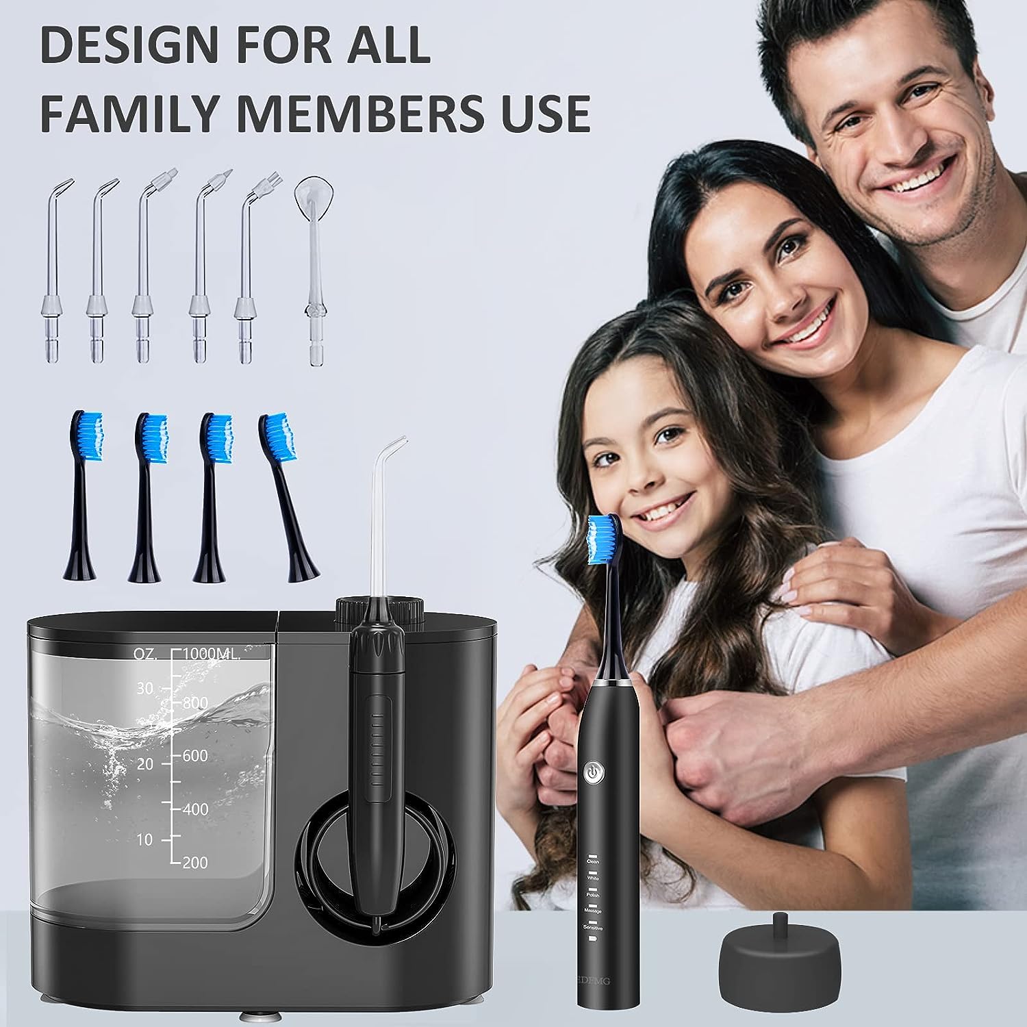 Water Flosser & Ultrasonic Toothbrush Combo - Extra Capacity Electric Water Toothbrush ,7 Jet Tips & 4 Brush Heads, 1000ML Detachable Water Tank, IPX6 Waterproof